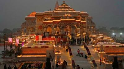 अयोध्या में श्रीराम जन्मभूमि पर निर्माण कार्य सम्पन्न, मंदिर परिसर सजा भव्य रूप में