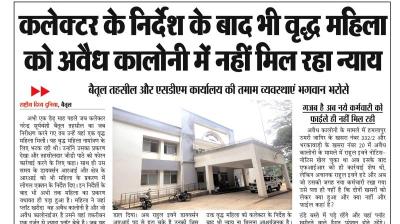 (बैतूल) कलेक्टर के निर्देश के बाद भी वृद्ध महिला को अवैध कालोनी में नहीं मिल रहा न्याय , - बैतूल तहसील और एसडीएम कार्यालय की तमाम व्यवस्थाएं भगवान भरोसे