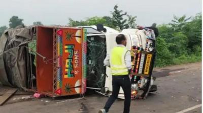 तेज रफ्तार का कहर: बस पलटने से 4 लोगों की दर्दनाक मौत