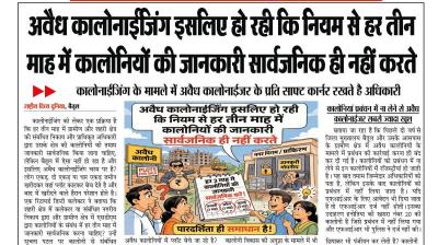 (बैतूल) अवैध कालोनाईजिंग इसलिए हो रही कि नियम से हर तीन माह में कालोनियों की जानकारी सार्वजनिक ही नहीं करते , - कालोनाईजिंग के मामले में अवैध कालोनाईजर के प्रति साफ्ट कार्नर रखते है अधिकारी