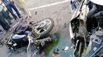 आगे जा रही बाइक से टकराई कार, चालक की मौके पर मौत
