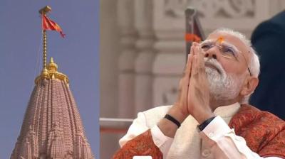 अयोध्या में भव्य क्षण: राम मंदिर के शिखर पर मोदी ने फहराई धर्मध्वजा, कहा— “आज विराम लगा लंबी प्रतीक्षा को