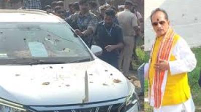 डिप्टी CM विजय सिन्हा के काफिले पर पथराव, RJD समर्थकों ने फेंकी चप्पलें