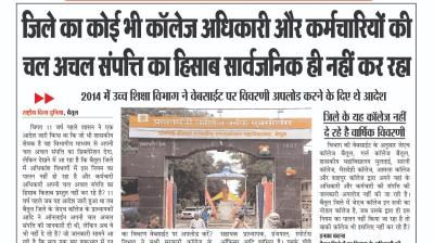 (बैतूल) जिले का कोई भी कॉलेज अधिकारी और कर्मचारियों की चल अचल संपत्ति का हिसाब सार्वजनिक ही नहीं कर रहा , - 2014 में उच्च शिक्षा विभाग ने वेबसाईट पर विवरणी अपलोड करने के दिए थे आदेश