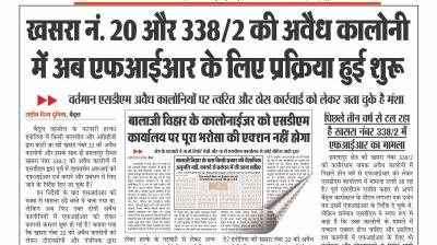(बैतूल) खसरा नंबर 20 और 338/2 की अवैध कालोनी में अब एफआईआर के लिए प्रक्रिया हुई शुरू , - वर्तमान एसडीएम अवैध कालोनियों पर त्वरित और ठोस कार्रवाई को लेकर जता चुके है मंशा