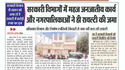 (बैतूल) सरकारी विभाग ही शासन को लगा रहे है रायल्टी में करोड़ों रूपए का चूना , - सरकारी विभागों में महज जनजातीय कार्य और नगरपालिकाओं ने ही रायल्टी की जमा, - अधिकांश विभाग और निर्माण एजेंसियों ठेकेदारों से जमा नहीं करा रही रायल्टी