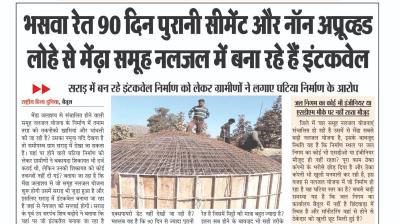 (बैतूल) भसवा रेत 90 दिन पुरानी सीमेंट और नॉन अप्रूव्हड लोहे से मेंढ़ा समूह नलजल में बना रहे हैं इंटकवेल , - सराड़ में बन रहे इंटकवेल निर्माण को लेकर ग्रामीणों ने लगाए घटिया निर्माण के आरोप