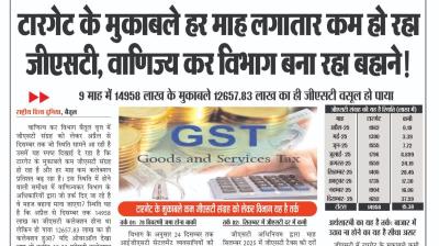 (बैतूल) टारगेट के मुकाबले हर माह लगातार कम हो रहा जीएसटी, वाणिज्य कर विभाग बना रहा बहाने! , - 9 माह में 14958 लाख के मुकाबले 12657.83 लाख का ही जीएसटी वसूल हो पाया