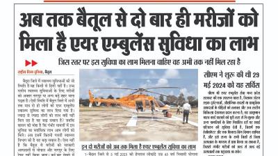 (बैतूल) अब तक बैतूल से दो बार ही मरीजों को मिला है एयर एम्बुलेंस सुविधा का लाभ , - जिस स्तर पर इस सुविधा का लाभ मिलना चाहिए वह अभी तक नहीं मिल रहा