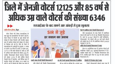 बैतूल(हेडलाइन)/नवल वर्मा। वोटर लिस्ट को लेकर एसआईआर के बाद कुछ नई जानकारियां भी सामने आई है। वोटर लिस्ट में जेनजी या युवा वोटर्स की संख्या से लेकर दिव्यांग और केन्द्रीय...