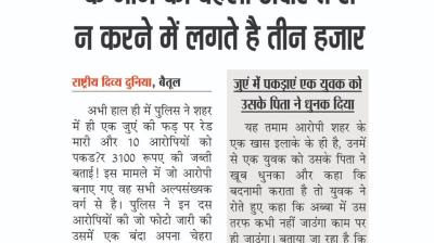 बैतूल। अभी हाल ही में पुलिस ने शहर में ही एक जुएं की फड़ पर रेड मारी और 10 आरोपियों को पकडक़र 3100 रूपए की जब्ती बताई! इस मामले में...