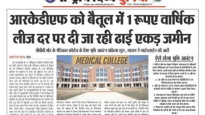 (बैतूल) आरकेडीएफ को बैतूल में 1 रूपए वार्षिक लीज दर पर दी जा रही ढाई एकड़ जमीन , - पीपीपी मोड के मेडिकल कॉलेज के लिए भूमि आवंटन प्रक्रिया शुरू, शासन ने गाईडलाईन की जारी
