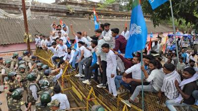 (बैतूल) कलेक्ट्रेट के सामने एनएसयूआई ने किया जंगी प्रदर्शन, पुलिस ने किया वाटर कैनन से प्रहार , - बेरोजगारी–छात्रवृत्ति घोटाला–पीपीपी मेडिकल कॉलेज के विरोध में किया कलेक्ट्रेट घेराव