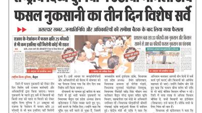 (बैतूल) अब फसल नुकसानी का तीन दिन होगा विशेष सर्वे, राष्ट्रीय दिव्य दुनिया ने उठाया था मामला , - असरदार खबर...जनप्रतिनिधि और अधिकारियों की समीक्षा बैठक के बाद लिया गया निर्णय