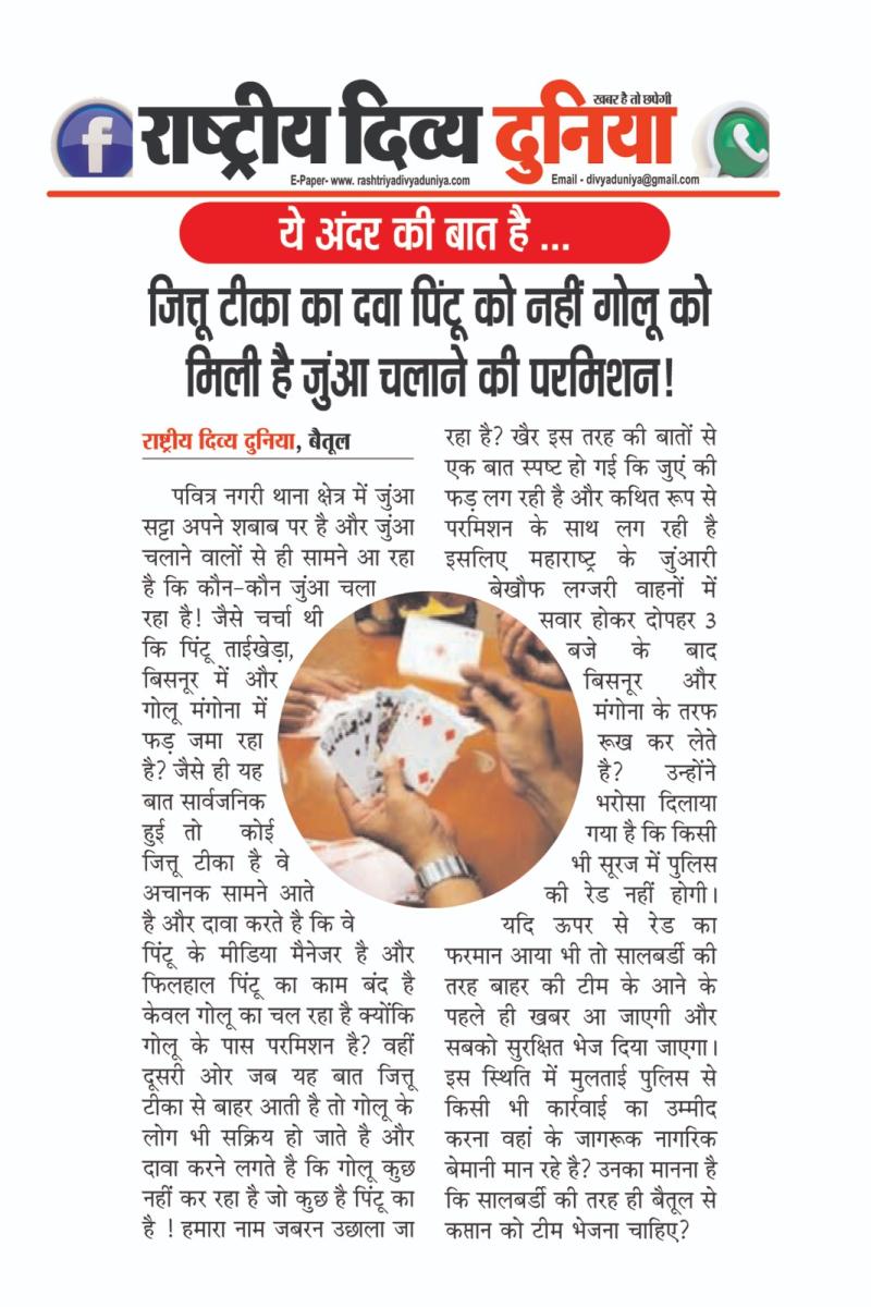 @ ये अंदर की बात है ... - जित्तू टीका का दावा पिंटू को नहीं गोलू को मिली है जुंआ चलाने की परमिशन..!