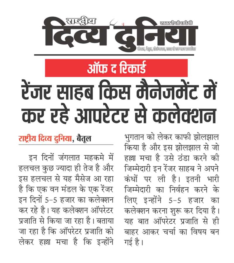 @ऑफ द रिकार्ड... - रेंजर साहब किस मैनेजमेंट में कर रहे आपरेटर से कलेक्शन