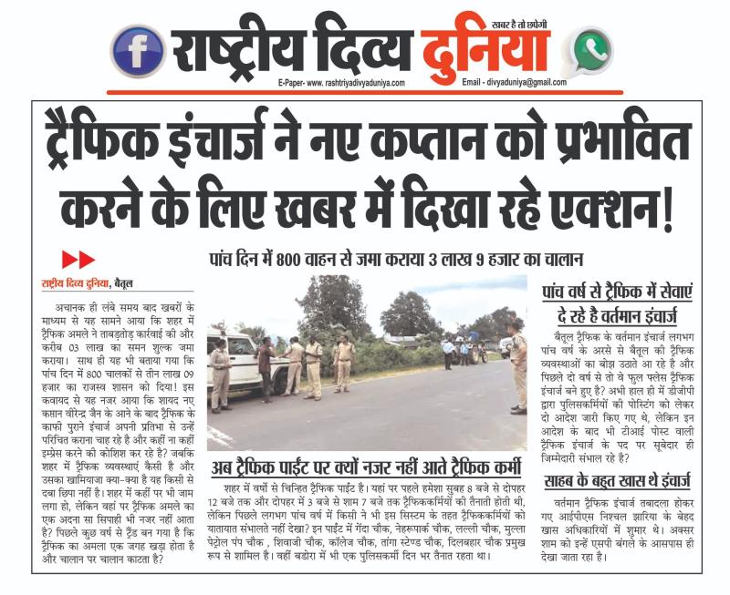 (बैतूल) ट्रैफिक इंचार्ज नए कप्तान को प्रभावित करने के लिए खबर में दिखा रहे एक्शन..! , - पांच दिन में 800 वाहन से जमा कराये 03 लाख 09 हजार के चालान