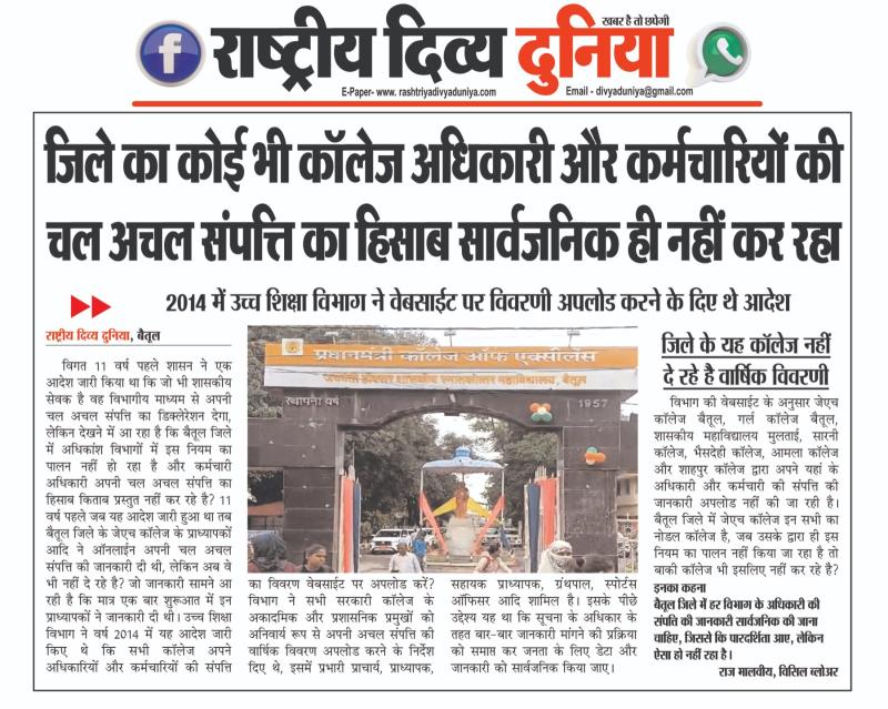 (बैतूल) जिले का कोई भी कॉलेज अधिकारी और कर्मचारियों की चल अचल संपत्ति का हिसाब सार्वजनिक ही नहीं कर रहा , - 2014 में उच्च शिक्षा विभाग ने वेबसाईट पर विवरणी अपलोड करने के दिए थे आदेश