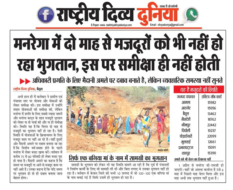 (बैतूल) मनरेगा में दो माह से मजदूरों को भी नहीं हो रहा भुगतान, इस पर समीक्षा ही नहीं होती , - अधिकारी प्रगति के लिए मैदानी अमले पर दबाव बनाते है, लेकिन व्यवहारिक समस्या नहीं सुनते