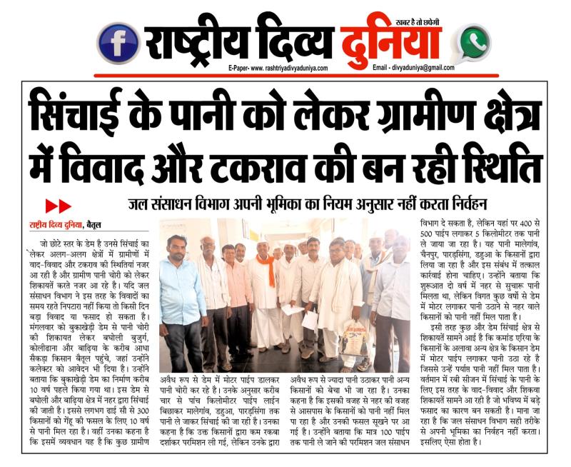 (बैतूल) सिंचाई के पानी को लेकर ग्रामीण क्षेत्र में विवाद और टकराव की बन रही स्थिति , - जल संसाधन विभाग अपनी भूमिका का नियम अनुसार नहीं करता निर्वहन