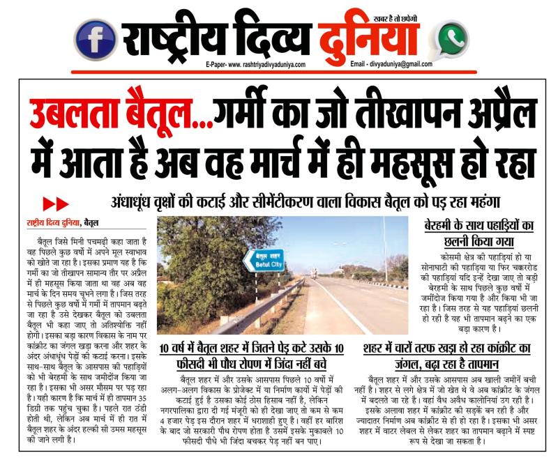 (बैतूल) उबलता बैतूल... गर्मी का जो तीखापन अप्रैल में आता है, अब वह मार्च में ही महसूस हो रहा - अंधाधुंध वृक्षों की कटाई और सीमेंटीकरण वाला विकास बैतूल को पड़ रहा महंगा