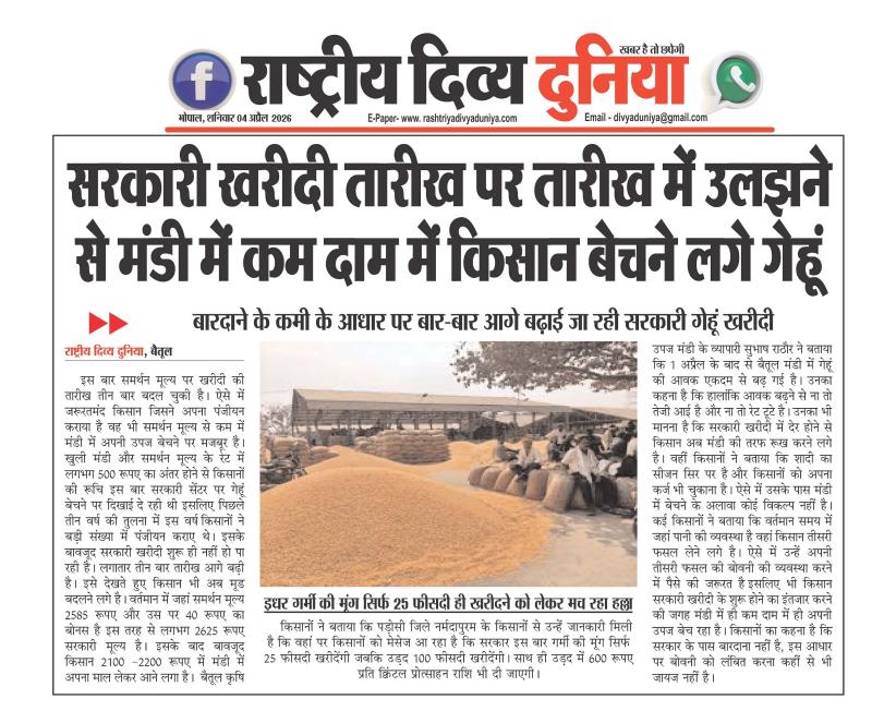 (बैतूल) सरकारी खरीदी तारीख पर तारीख में उलझने से मंडी में कम दाम में किसान बेचने लगे गेहूं , - बारदाने की कमी के आधार पर बार-बार आगे बढ़ाई जा रही सरकारी खरीदी