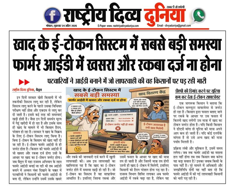 (बैतूल) खाद के ई-टोकन सिस्टम में सबसे बड़ी समस्या फार्मर आईडी में खसरा और रकबा दर्ज ना होना , - पटवारियों ने आईडी बनाने में जो लापरवाही की वह किसानों पर पड़ रही भारी