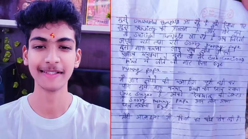 पुलिस को मौके से एक सुसाइड नोट मिला है, जिसमें स्वयम ने लिखा है कि मुझे अनवॉन्टेड थॉट्स आ रहे हैं। दिमाग फट रहा है। एंग्जाइटी की प्रॉब्लम है। मन में सुसाइड थॉट्स आ रहे हैं। अब जिंदगी अच्छी नहीं लग रही। सॉरी मम्मी-पापा। मुझे माफ करना... मैं आप लोगों की ख्वाहिश पूरी नहीं कर पाया। दादी का ध्यान रखना। उन्हें शुगर है... मेरी आत्महत्या में किसी का कोई दोष नहीं है।