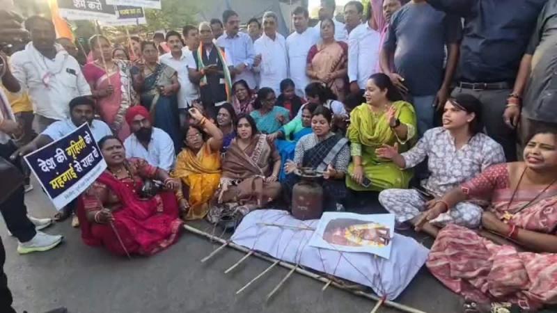 गैस सिलेंडर महंगाई पर दुर्ग में कांग्रेस का प्रदर्शन
