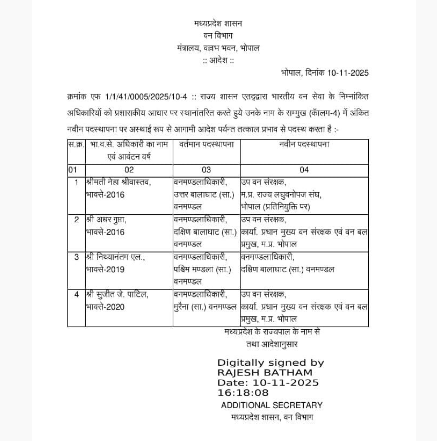 मध्य प्रदेश वन विभाग में बड़ा फेरबदल 7 अफसरों के तबादले