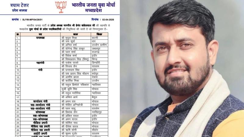 MP News: भारतीय जनता युवा मोर्चा (BJYM) मध्य प्रदेश ने अपनी नई प्रदेश कार्यकारिणी की विस्तृत सूची जारी कर दी है. प्रदेश अध्यक्ष श्याम टेलर के नेतृत्व में संगठन के विभिन्न पदों पर नई नियुक्तियां की गई हैं. इस सूची में कई नए चेहरों को मौका मिला है, जिनमें खासतौर पर छात्र राजनीति से जुड़े कार्यकर्ताओं की भागीदारी देखने को मिली है.