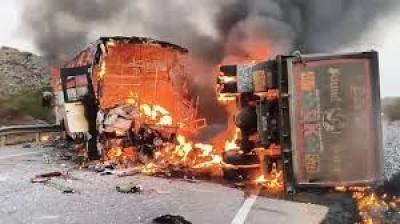 हैदराबाद। आंध्र प्रदेश के मार्कापुरम जिले में गुरुवार को एक बड़ा सड़क हादसा हो गया। एक निजी बस की एक ट्रक से टक्कर होने के बाद उसमें आग लग जाने से...