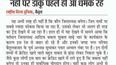 बैतूल। यह अभी स्पष्ट ही नहीं है कि कौन जिलाध्यक्ष बनेगा। जिन नामों पर सबसे ज्यादा फोकस किया जा रहा है, उसको लेकर भी अलग ही तरह का ट्रेंड देखने...