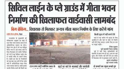 (बैतूल) सिविल लाईन के प्ले ग्राउंड में गीता भवन निर्माण की खिलाफत वार्डवासी लामबंद , - विधायक से मिलकर अन्यत्र गीता भवन निर्माण के लिए करेंगे मांग