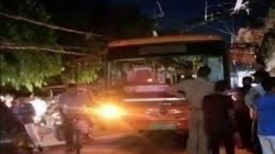 हाईटेंशन लाइन के पोल से टकराकर झुकी बस, मौके पर मची अफरा-तफरी