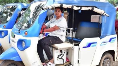 ई-रिक्शा चलाकर यात्रियों को मंजिल तक पहुंचा रही सरस्वती