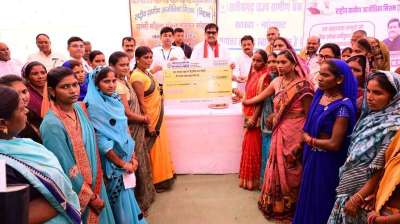 खाद्य मंत्री बघेल ने स्व-सहायता समूह की महिलाओं को 3.50 करोड़ रूपये के ऋण स्वीकृति का चेक वितरित किया