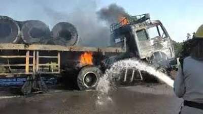भिलाई में चलती ट्रक में लगी भीषण आग